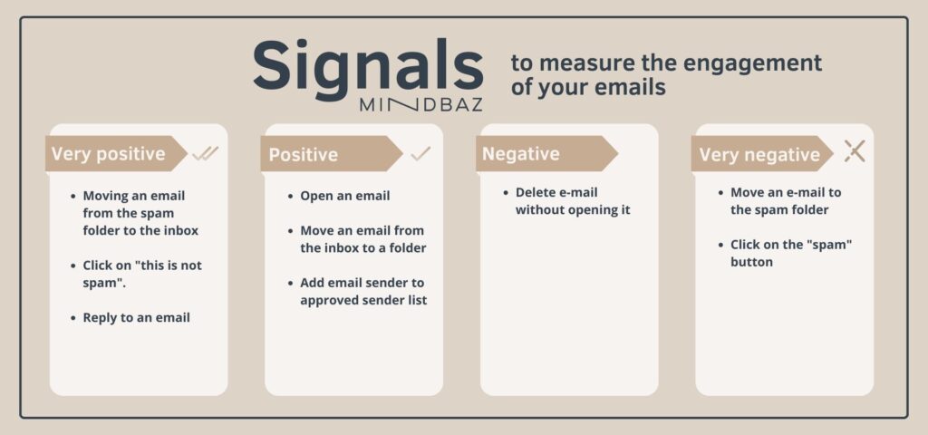 We’ve compiled a list of indicators to measure the engagement of your email campaigns, from the most positive to the most negative.